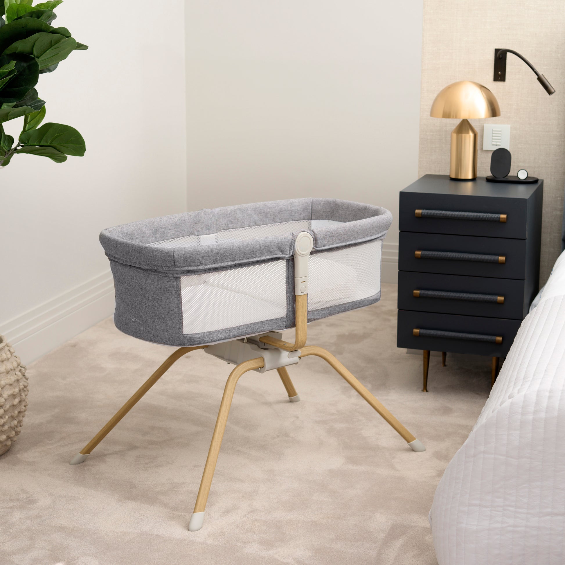 The crib has a perfect height of 74cm, offers easy access to your baby, anywhere in your home. For co-sleeping, it does not require fastening to your bed, ensure it's never accidentally left in an unsafe position.
