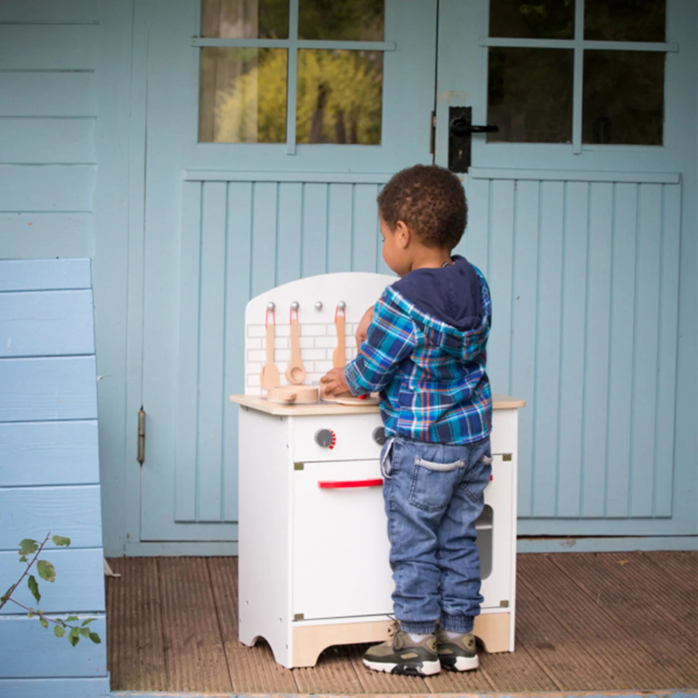 This kitchen is big enough for friends to play together happily, developing their communication skills. Different accessories are included to foster easy and fun role play; food for washing, cutting and cooking, cooking utensils, and salt and pepper to add flavour.