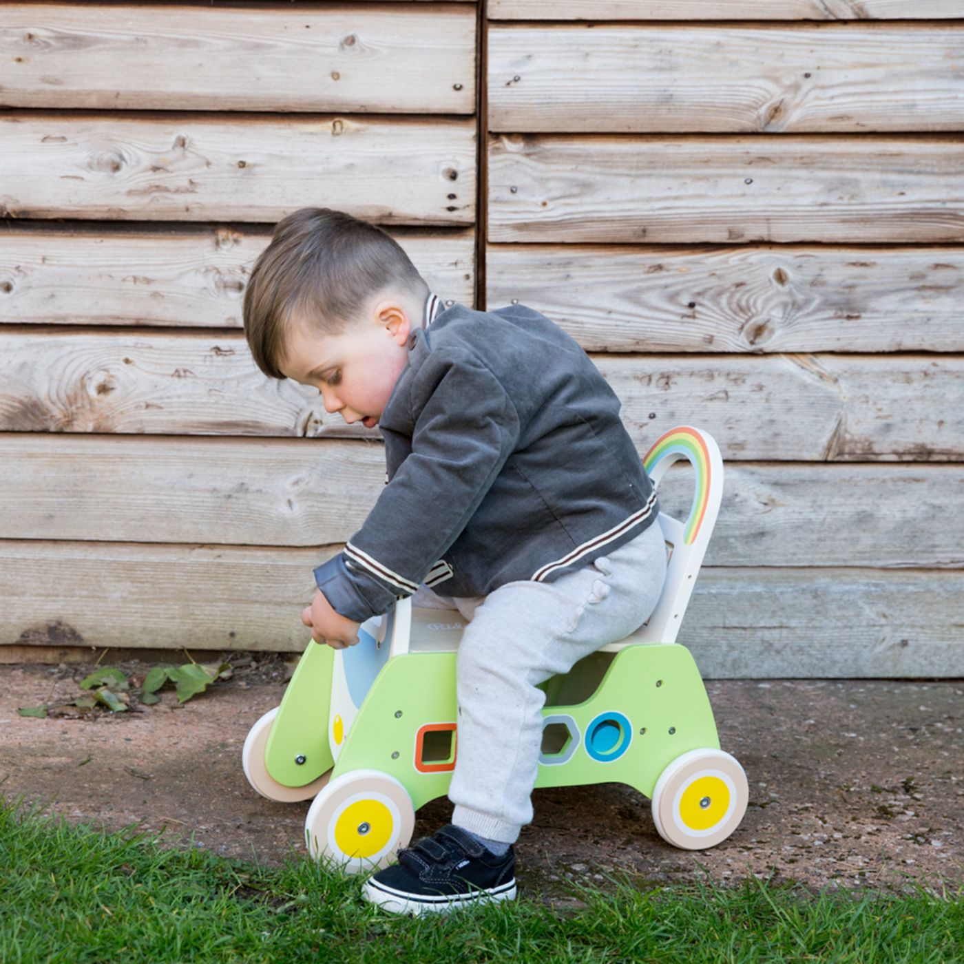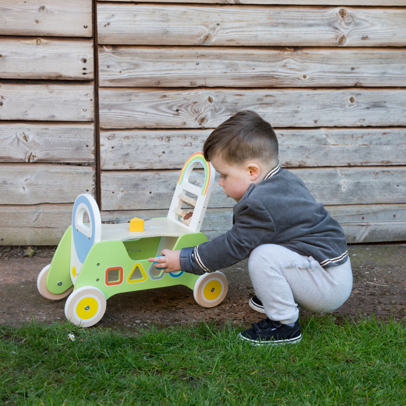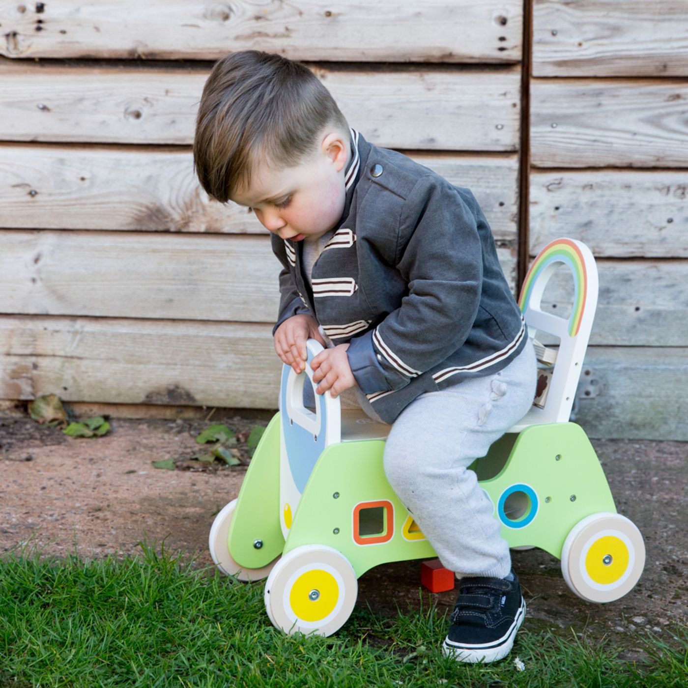 - Colourful rider walker with shape sorting blocks