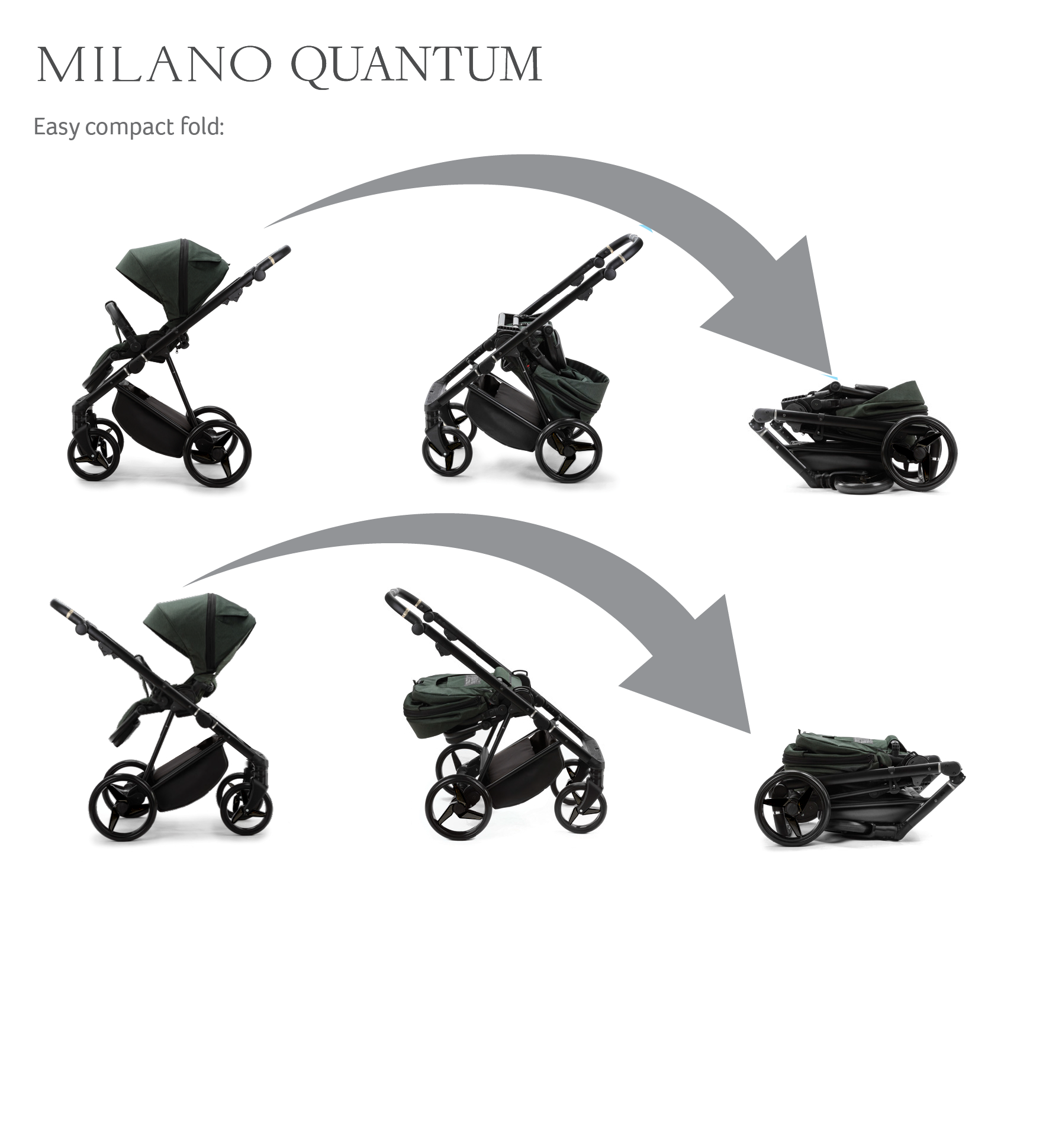 The Milano Quantum is available in 3 stunning colourways and is available as a complete travel system package. The package includes an easy-fold chassis, large carrycot, stylish seat unit, protective car seat plus a whole host of matching accessories.