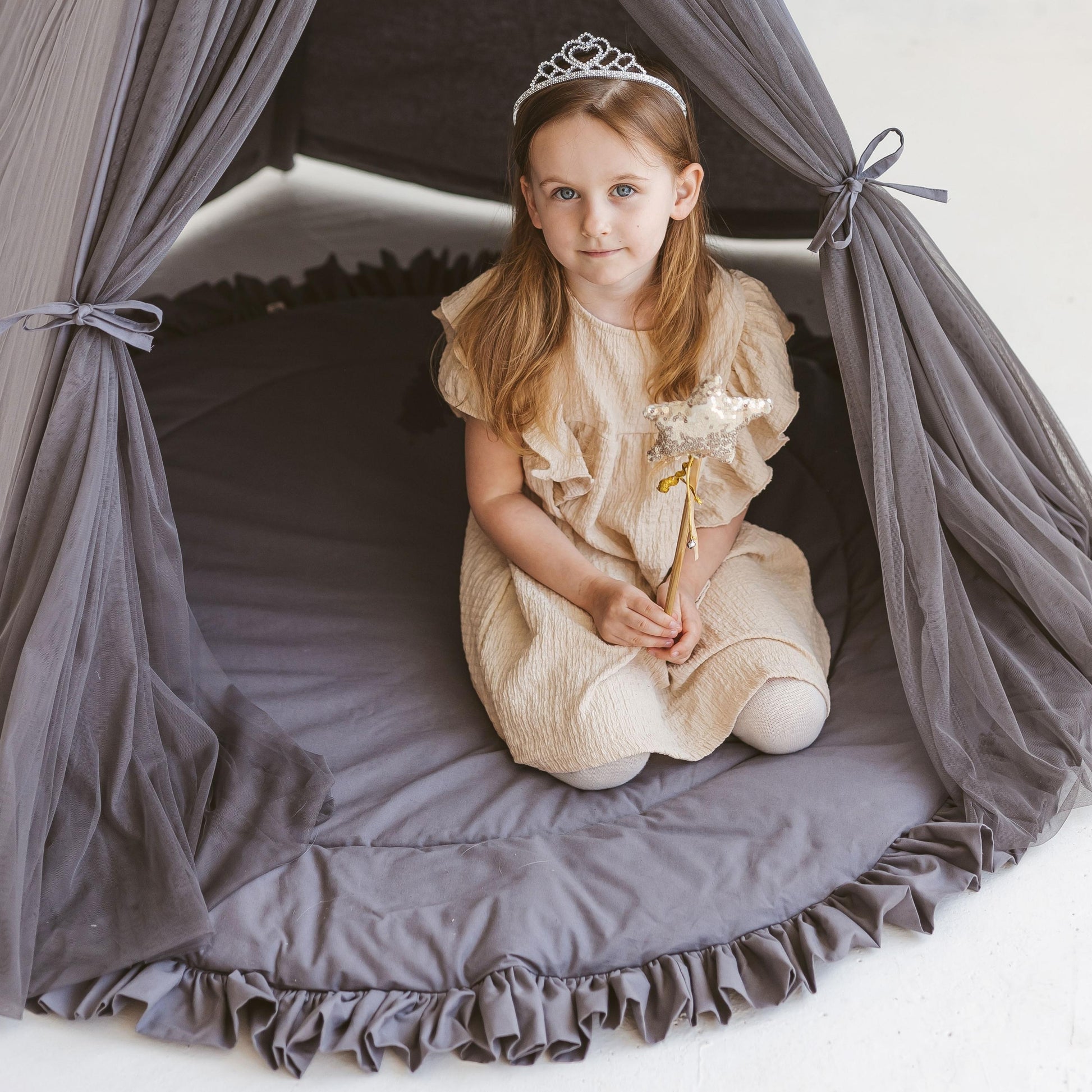 PERFECT FOR TEEPEE & NURSERY. With a bigger diameter of 49 inches / 125 cm, this boho style teepee play mat perfectly matches our play tents!