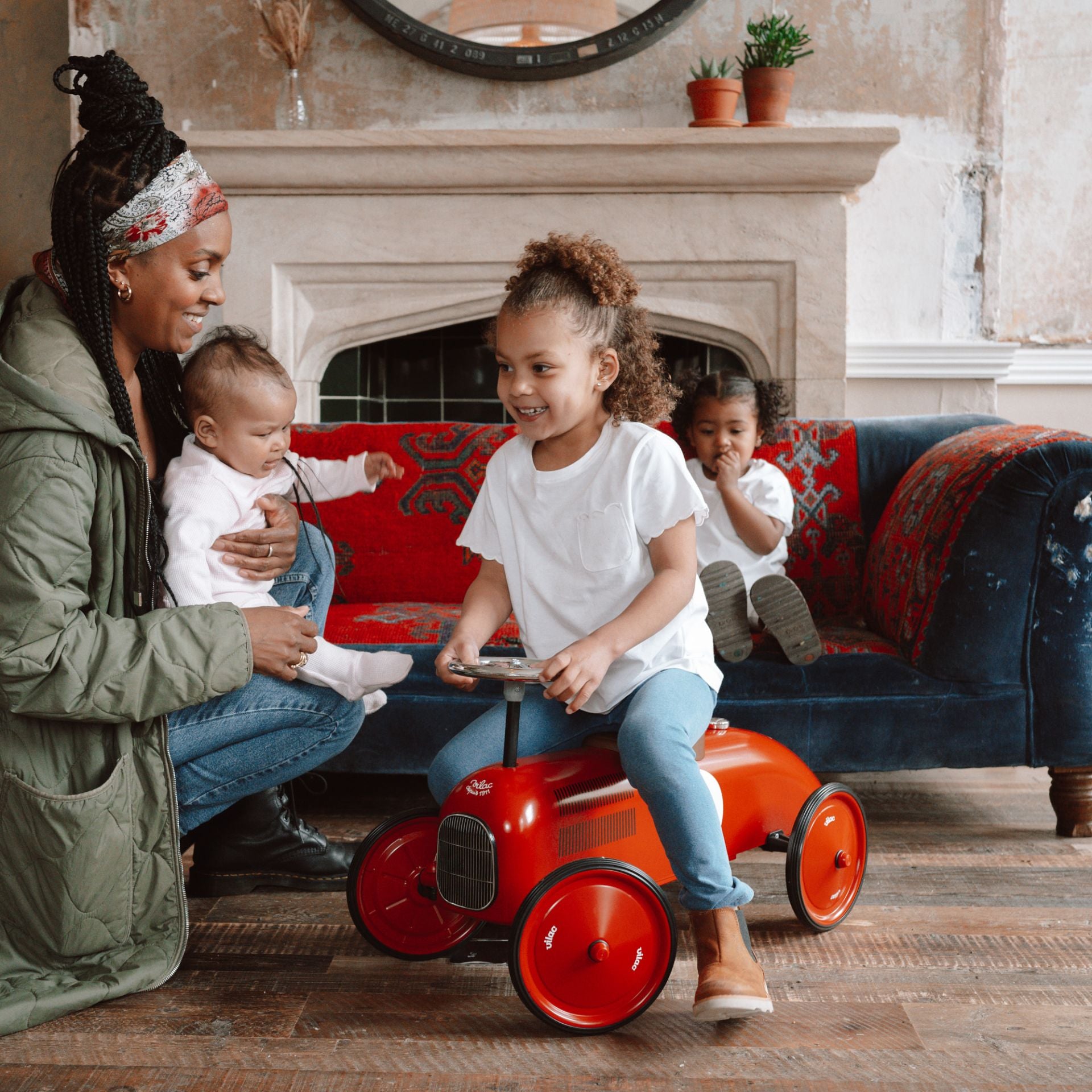 It features a durable metal construction, a comfortable seat and a stylish metal steering wheel. This traditional toy is perfect for encouraging creative play as well as helping to develop essential motor and co-ordination skills.
